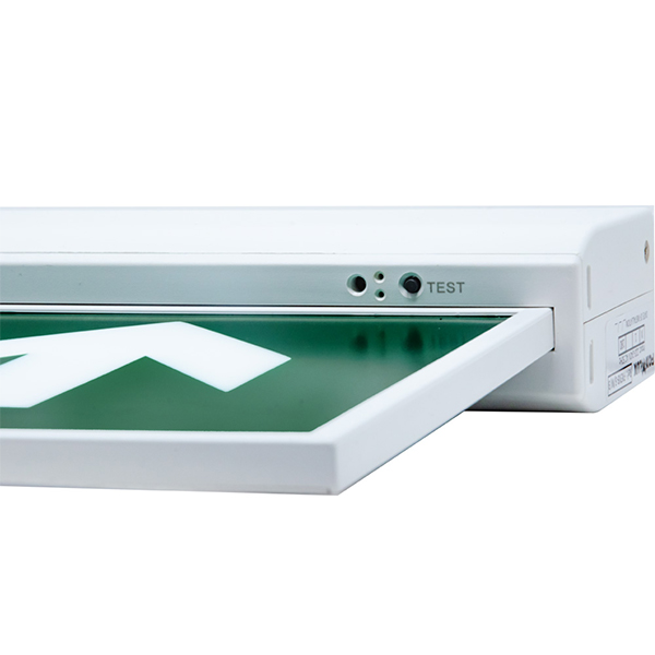 EM-SIGN2 is our slim, surface-mounted LED exit sign with 3-hour emergency operation. Available in self-test or DALI versions, it offers clear visibility up to 25m and comes in white or black with interchangeable arrow legends. Ideal for modern commercial spaces.